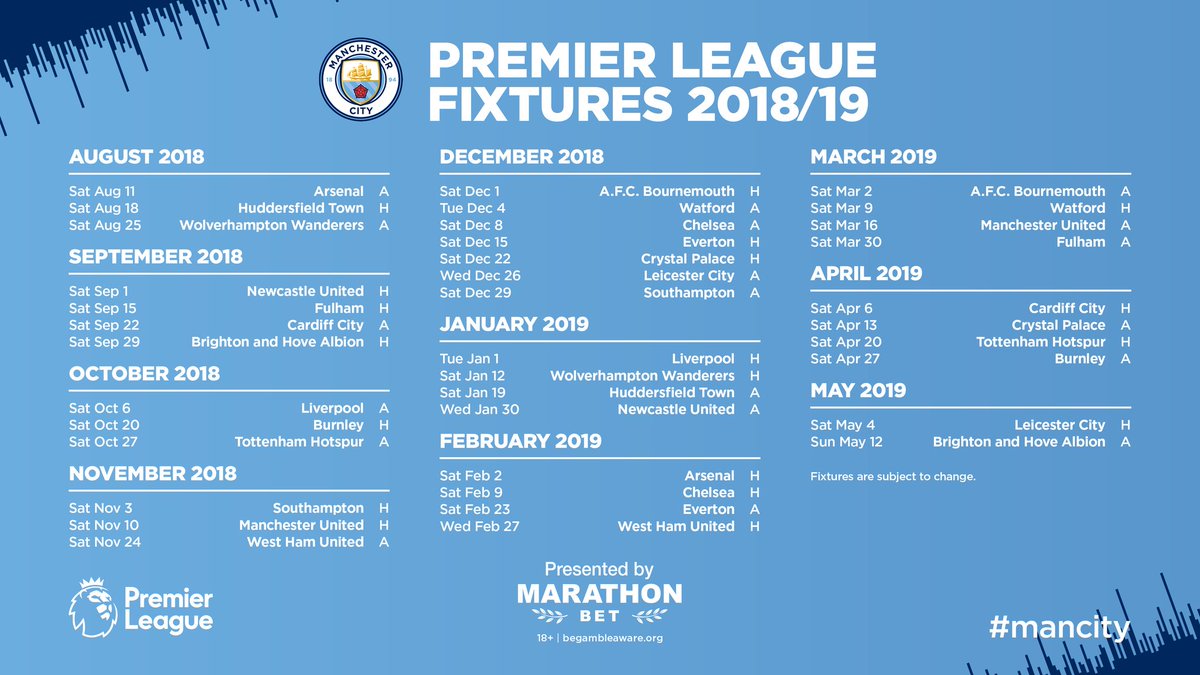 Fpl Arab جدول مباريات مانشستر سيتي كامل لموسم 2019 2020 Facebook
