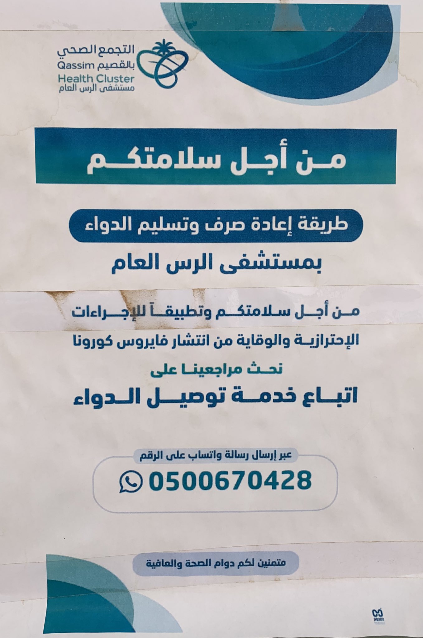 صـ و ت ا لـ ر س On Twitter من أجل سلامتكم خصص مستشفى الرس العام رقما للواتساب من أجل إعادة صرف الدواء وتوصيله لكم خليك في البيت التجمع الصحي بالقصيم Https T Co Vnwtot5hu8